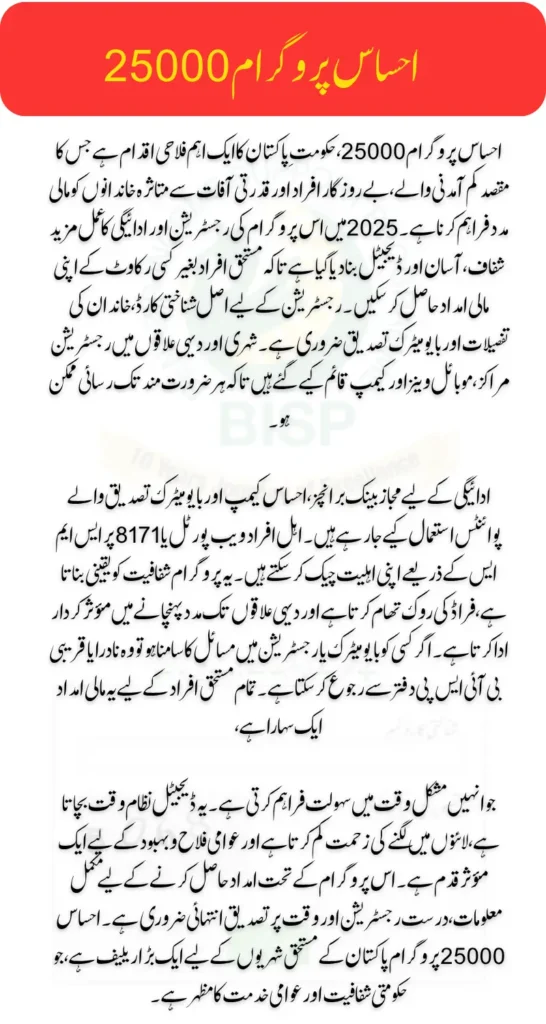 Ehsaas Program 25000 Registration 2025 Registration Requirements & Payment Collection Process