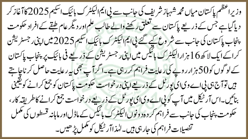 Prime Minister of Pakistan Mian Muhammad Shahbaz Sharif has launched the PM Electric Bike Scheme 2025, through which students and other common people from Pakistan can register themselves in the PM Electric Bike Scheme 2025 launched by the Government of Pakistan, and get a discount of Rs 50,000 per bike for the people of Pakistan. If you also want to get this discount, then make sure to submit your application to the Government of Pakistan through the PAVE portal today.